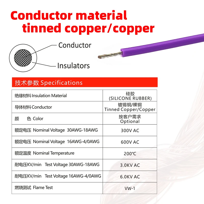 Our premium UL-certified 22 AWG silicone rubber wire combines durability with exceptional flexibility, making it ideal for various electrical applications. Featuring high-quality tinned copper conductors with a 1.7mm diameter, this wire offers excellent conductivity and corrosion resistance.