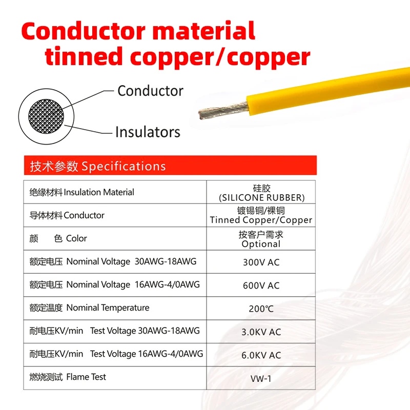 Engineered for superior performance and durability, this UL 3123 certified silicone rubber electric cable features a high-quality tinned copper conductor in 18 AWG size. The flexible silicone rubber insulation offers excellent resistance to extreme temperatures (-60°C to 200°C), making it ideal for high-heat applications.
