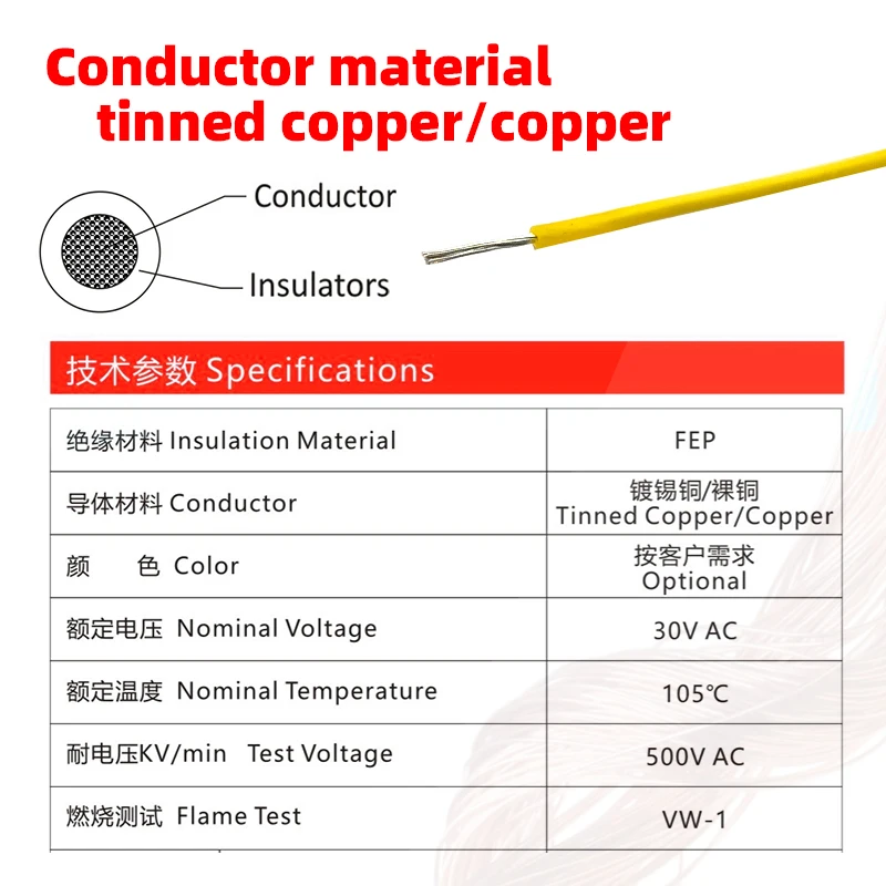 The UL10064 FEP wire cable offers superior performance for overhead applications, featuring high-quality FEP (fluorinated ethylene propylene) insulation that ensures excellent thermal and chemical resistance. Available in 10, 12, and 14 AWG sizes, this versatile cable comes in both stranded and solid conductor configurations to meet various installation requirements.
